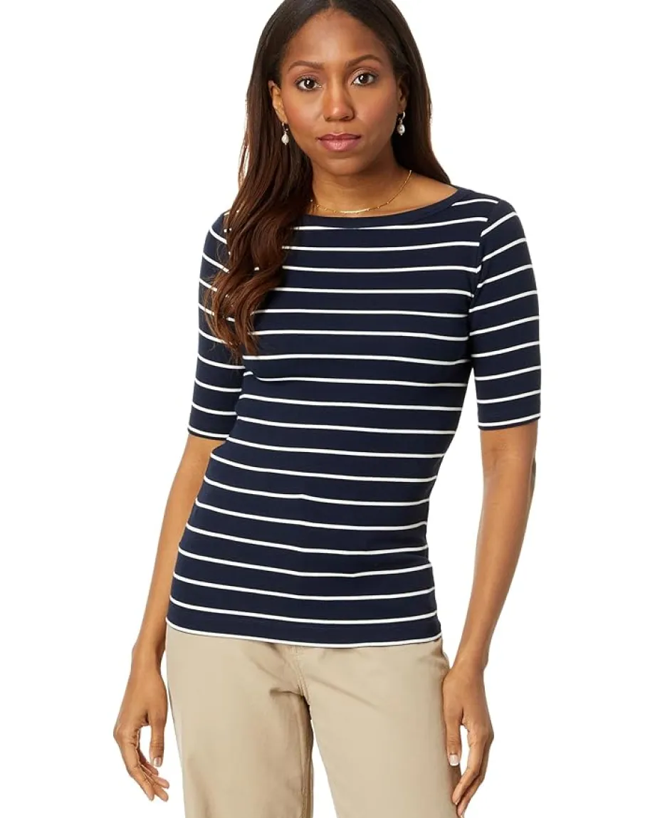 - Dress to perfection in this easy to wear, trend proof NIC+ZOE™ Wide Stripe Rib Knit Boatneck Tee. Made from soft and comfy cotton Modal blend, this pullover fitted tee features a wide boat neck to complement the horizontal striping and a touch of extra length in the short sleeves.