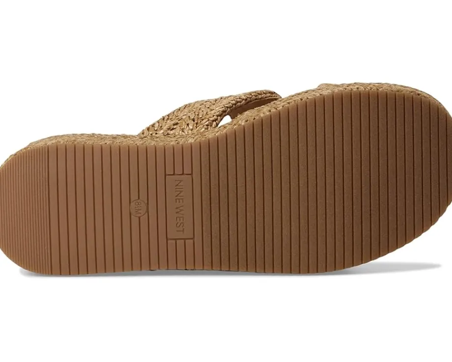 - Step out in style wearing the Nine West® Cerry platform sandals. The slip-on footwear features woven detailing and high wedge heels.