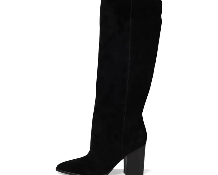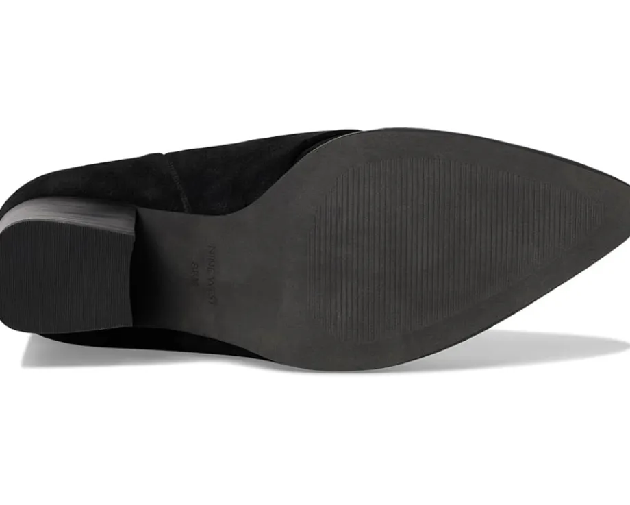 - Stride confidently through streets wearing the Nine West® Chicke. Crafted from suede upper, and man-made lining, this pair of tall boots features pointed toe, pull-on closure, and block heels. Their flattering silhouette offers all-day comfort and unbeatable flair.