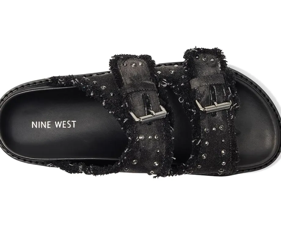 - Be stylish in the Nine West®Eleny casual sandals. This sandal features duo embellished straps, a slip-on silhouette and a round toe. The eleny sandal will become a staple in your wardrobe! Founded in 1978, nine west empowers women to take on the world in style, from day to night.
