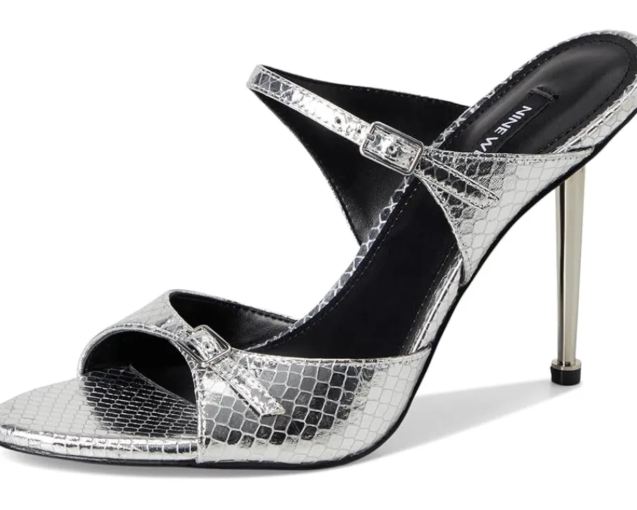 - Step up your shoe game choosing the Nine West® Reida dress sandals. It features fashionable stiletto heels, open toes and slip-on silhouette. They have double strap upper design with buckle detail. The Reida is a must-have wardrobe staple! Founded in 1978, Nine West empowers women to take on the world in style, from day to night.