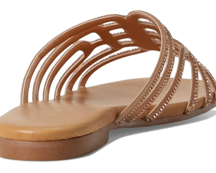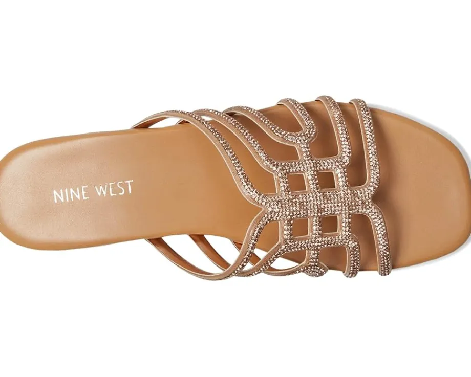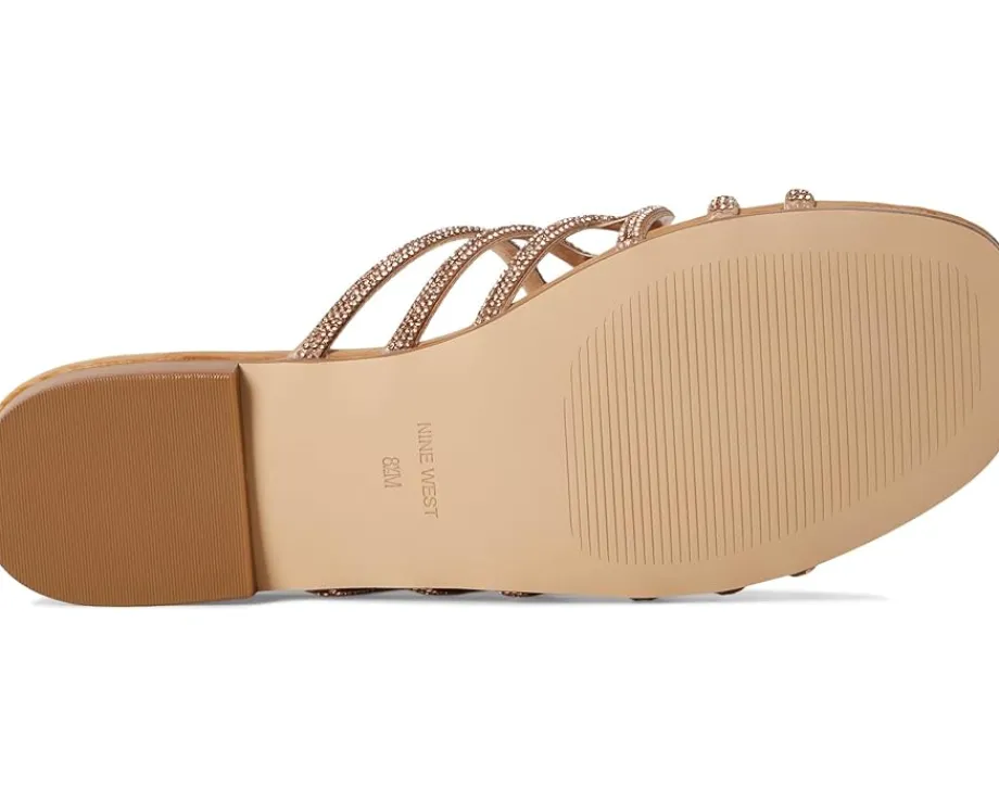 - Complete your look in the Nine West® Timy dress flats. They feature a modern square toe shape, strappy silhouette, and embellishments on the straps. These slide sandals are made of a polyurethane upper, cushioned footbed, and polyurethane lining. These flat sandals are anything but boring and sure to impress.