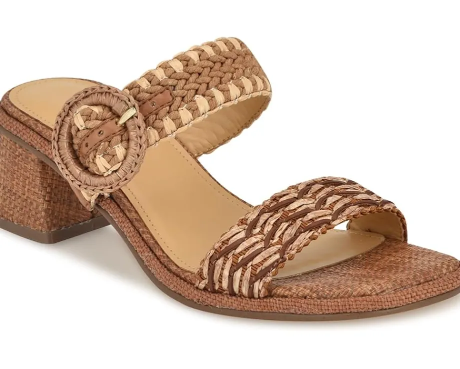- Slip into sophistication with Nine West® Emerey sandals. Featuring an open square toe and chic woven straps, these sandals offer a blend of style and comfort. The buckle detail on the foot strap adds a touch of refinement, while the mid block heel provides just the right amount of lift for all-day wear.