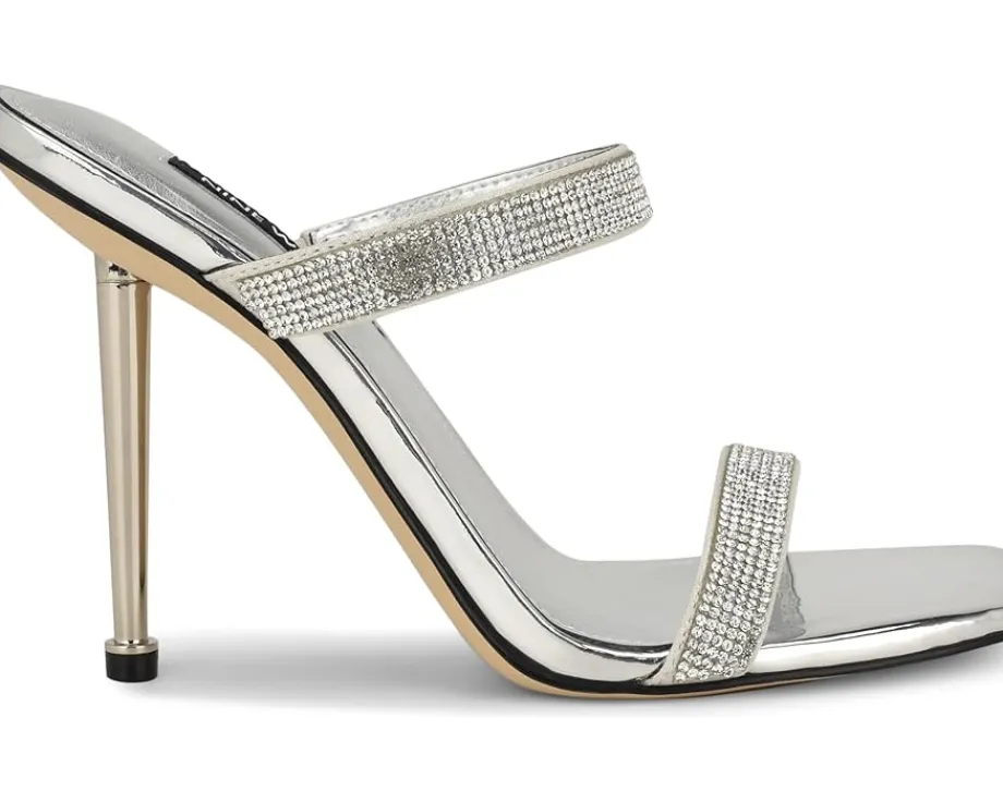 - Keep your style game sassy with Nine West® Yogi slip-on sandals that are perfected to empower women to take on the world in style, from day to night. These comfortable sandals are featured in faux suede upper with polyurethane lining and a rubber insole. With a modern square toe design and embellished double straps, they make a gorgeous wardrobe staple.