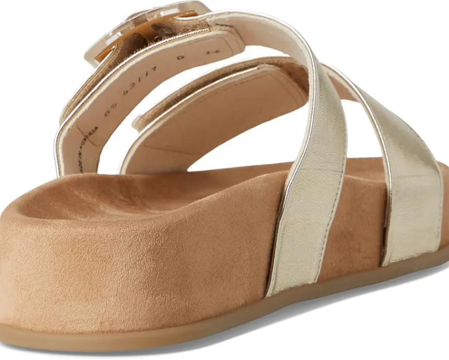 - Say ‘Aloha’ to effortless elegance and all-day comfort! The Paul Green™ Aloha Slide is your go-to sandal for breezy sophistication, blending premium craftsmanship with a laid-back island vibe. Designed with a luxe leather upper, lining, and insole, it delivers a buttery-soft feel with every step. The open-toe silhouette and slip-on design make it the ultimate warm-weather essential, while the two-strap details-featuring a stylish faux buckle-hide adjustable Velcro closures for a custom fit. A cushioned footbed provides just the right support, and the durable rubber outsole ensures confident strides.