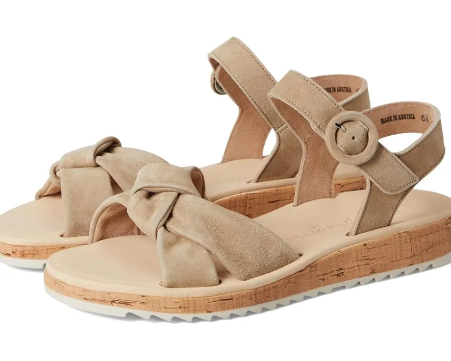 - Feminine yet sporty, this Paul Green™ Trento Sandals feature a light lug sole and a cork platform with an ultra-cushioned footbed. The soft leather knot detailing and buckle accented hook-and-loop adjustable strap adds the finishing touches to this must-have look.