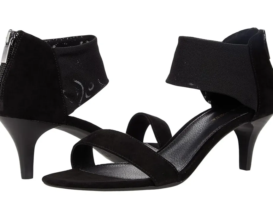 - The striking Pelle Moda® Elvi pump makes a bold statement with a smooth suede upper finish, an open toe with single strap across the vamp, and a stretch mesh ankle cuff.
