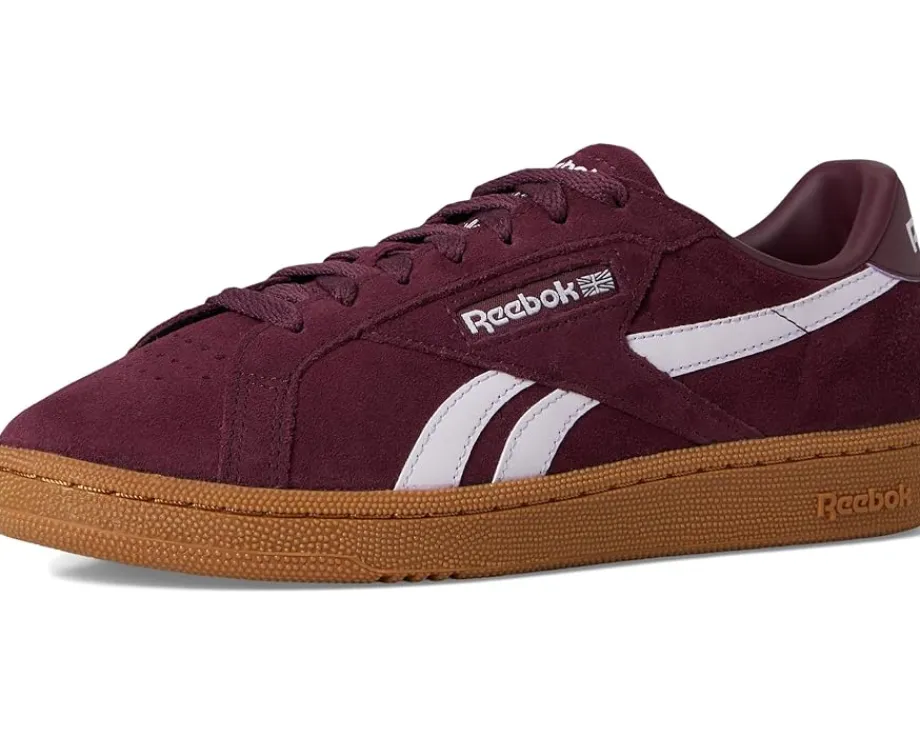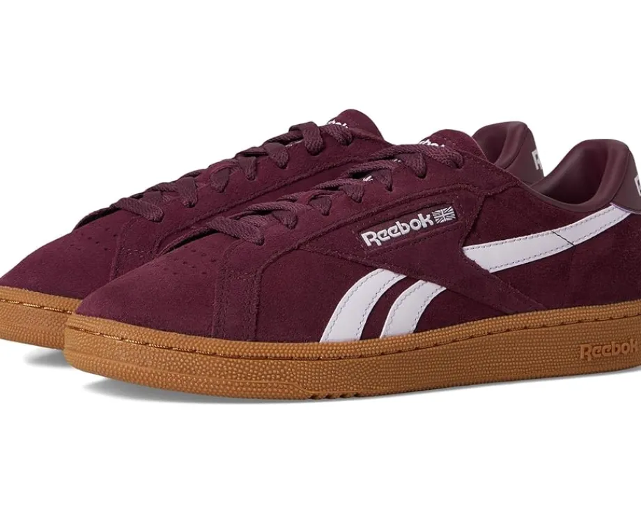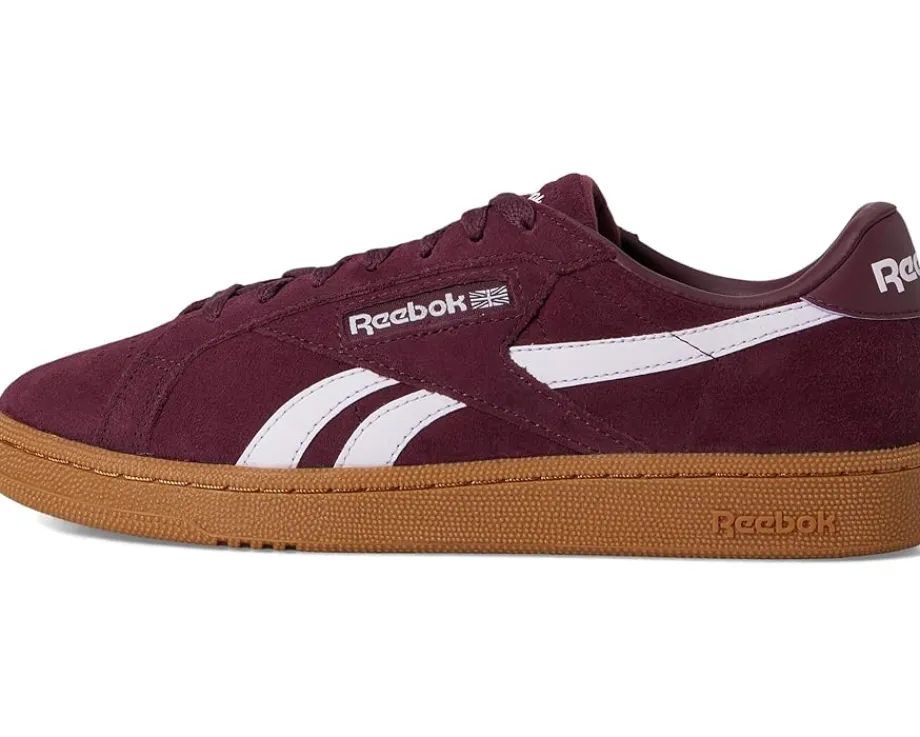 - Step up your fashion game with these timeless Reebok® Lifestyle Club C Grounds UK Sneakers that never go out of style. The low-top sneakers feature a full suede upper with full gum cupsole, synthetic leather lining, silver metallic side stripe detail that adds style to the look, and a textile insole for enhanced comfort throughout the day. The lace-up closure on the sneakers is designed to provide a customizable fit.