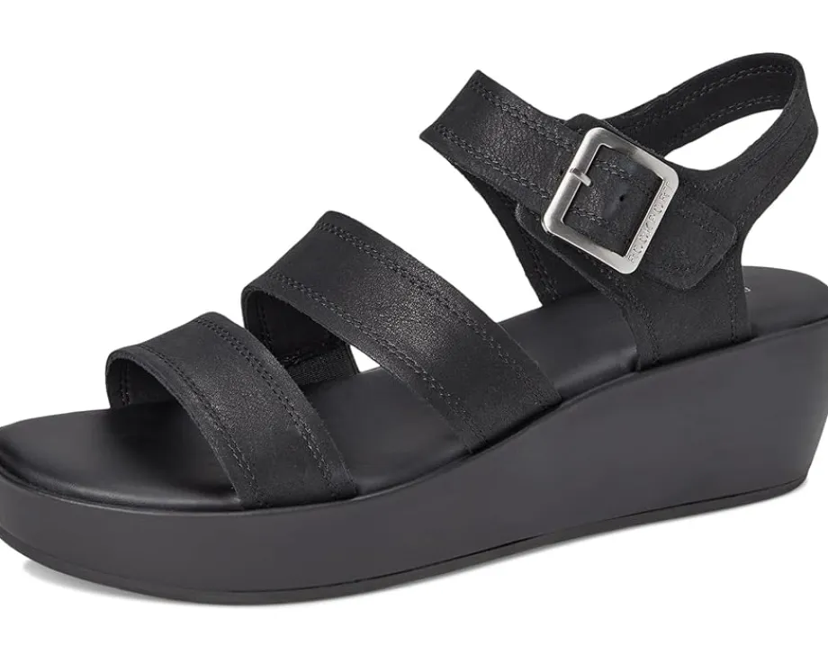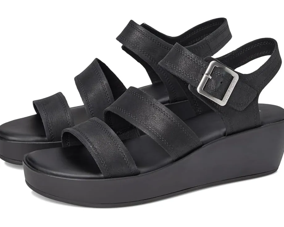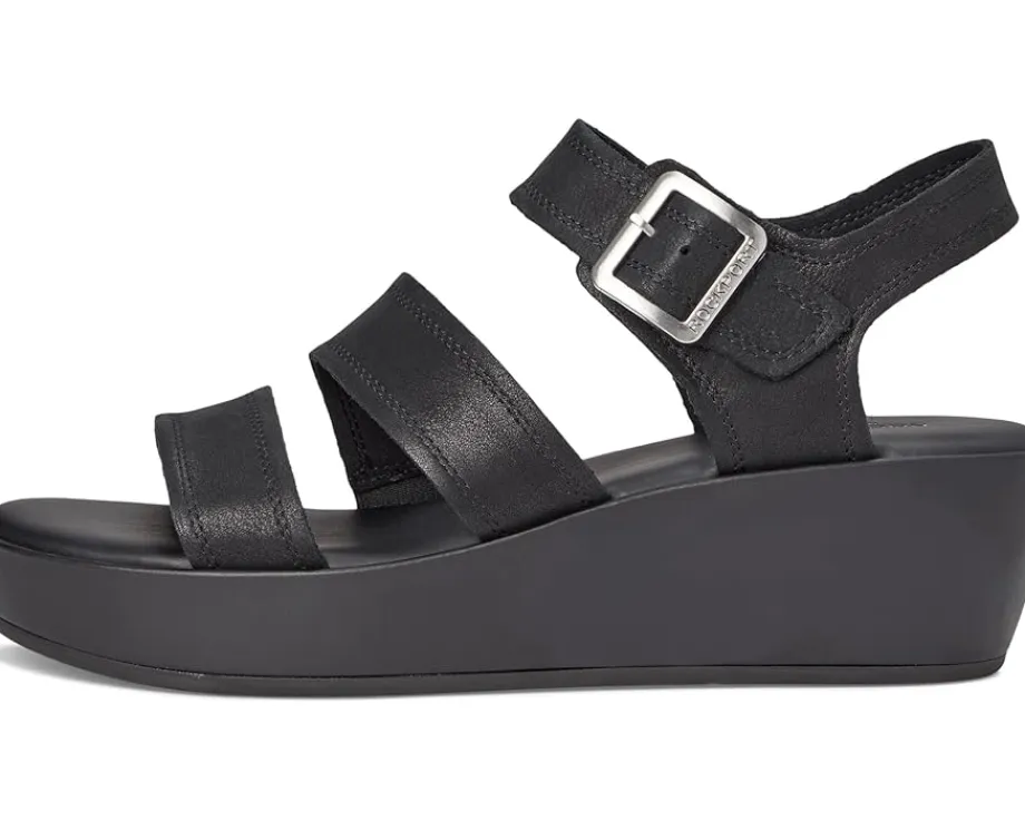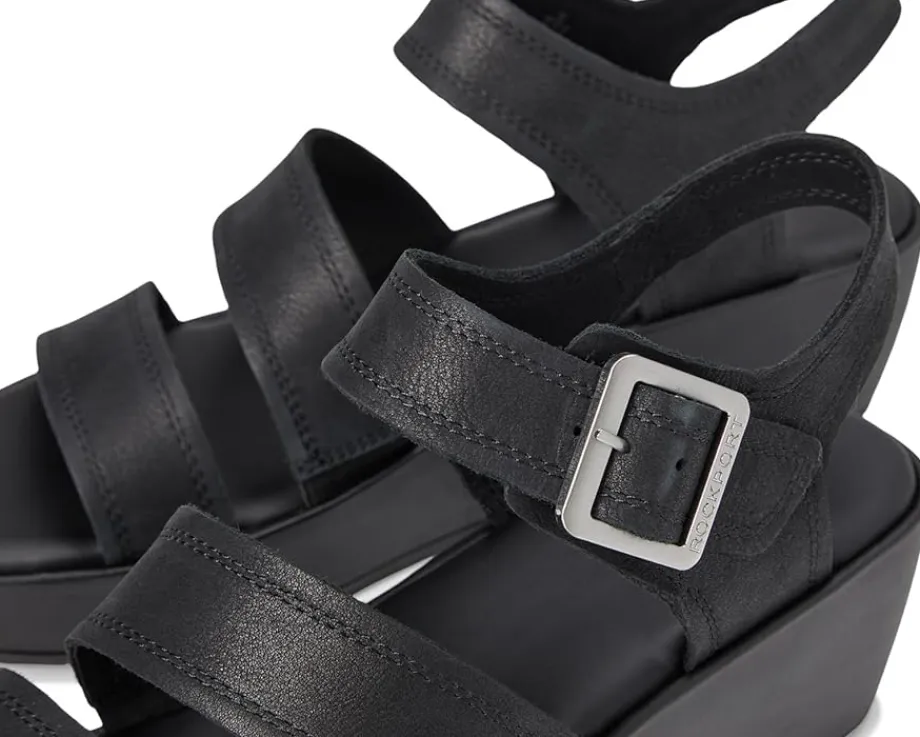 - Look chic and comfortable in the Rockport® Anala wedge sandals. It offers a strappy silhouette, open toe design, and an adjustable ankle strap for a secure fit. These sandals will keep you looking stylish all day and night. Featuring truTECH® technology for lightweight shock absorption. The sandals feature leather upper, polyester lining, and foam insole.