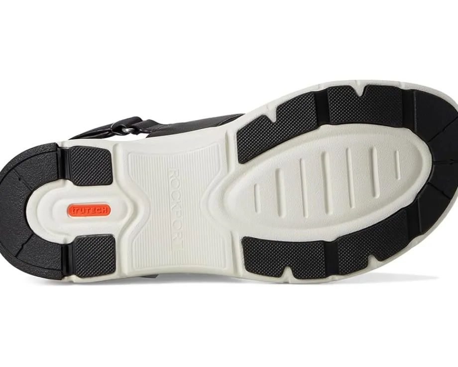 - Simplify your classy look wearing the Rockport® Qwera. Crafted from leather upper, textile lining, and EVA insole, this pair of lightweight sandals features open round toe, cushioned footbed, two strap silhouette, and slingback strap. This sandal will keep you feeling comfortable all-day with truTECH® technology for lightweight shock absorption.