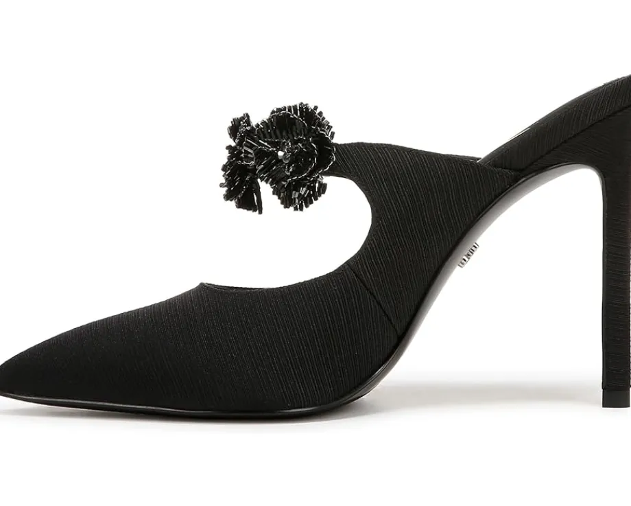 - With beaded floral detailing and a pointed toe, the Sam Edelman® Amelie Dress Mule is a fall-forward classic that pairs with everything from cropped denim to cocktail dresses. The slip-on footwear features polyester upper with sleek stiletto heel and pointed toe silhouette.