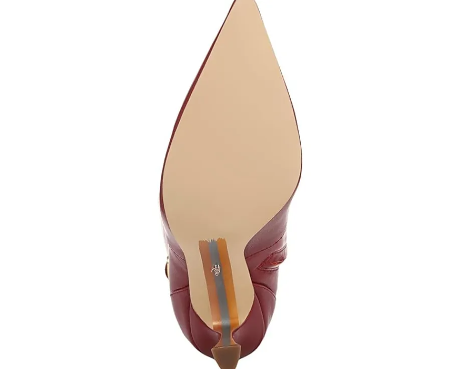 - Feel sky-high wearing the Sam Edelman® Elia boots with belt detailing and tapered stiletto heels. The leather upper of these boots features fall textures and chunky knits for a sleek look. These tall boots are crafted with a polyurethane insole and lining for all-day comfort. These above-the-knee heeled boots add a glamorous look to your outfits and styles.