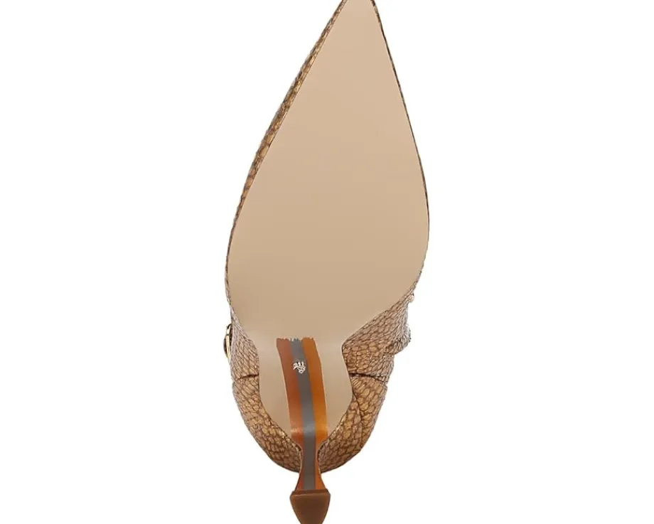 - Feel sky-high wearing the Sam Edelman® Elia boots with belt detailing and tapered stiletto heels. The leather upper of these boots features fall textures and chunky knits for a sleek look. These tall boots are crafted with a polyurethane insole and lining for all-day comfort. These above-the-knee heeled boots add a glamorous look to your outfits and styles.