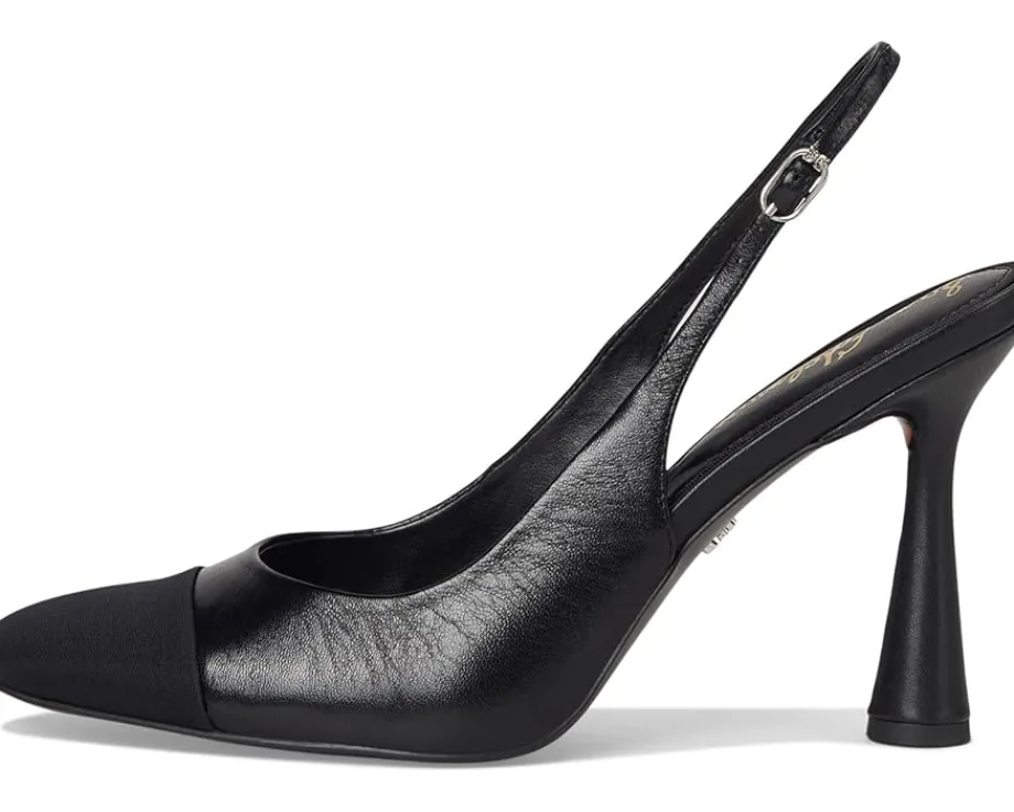 - Make your fashion statement wearing the Sam Edelman® Essa sandals. They are made of a polyester upper, faux leather insole, and polyurethane lining. The slingback strap offers added support. These heeled sandals are a great choice to pair with your party outfits and gowns.