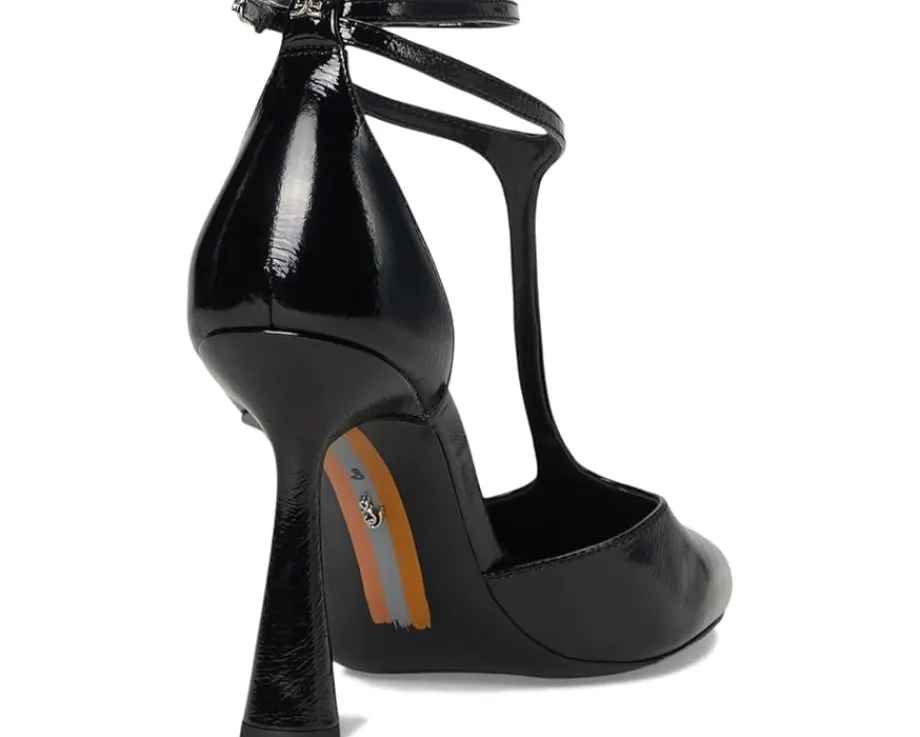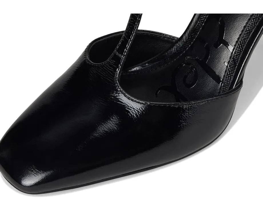- Raise the glam quotient at the next party wearing the Sam Edelman® Everett Heels. The square-toe heels are crafted with a leather upper, polyurethane lining, and a comfortable faux leather insole. The ankle strap & buckle closure offer easy adjustability and the flare heel elevates the height.