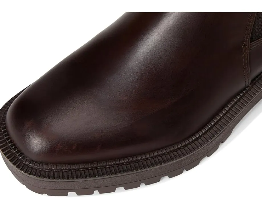 - Designed with a heavily lugged synthetic rubber outsole with a utilitarian style update to a classic Chelsea boot, the Sam Edelman® Laguna boots are the perfect choice for your outdoor adventures. The waterproof technology of these boots keeps your feet dry to take you through the day. These booties are crafted with a leather upper, polyurethane insole, and polyurethane lining. These leather booties are the perfect footwear for different occasions.