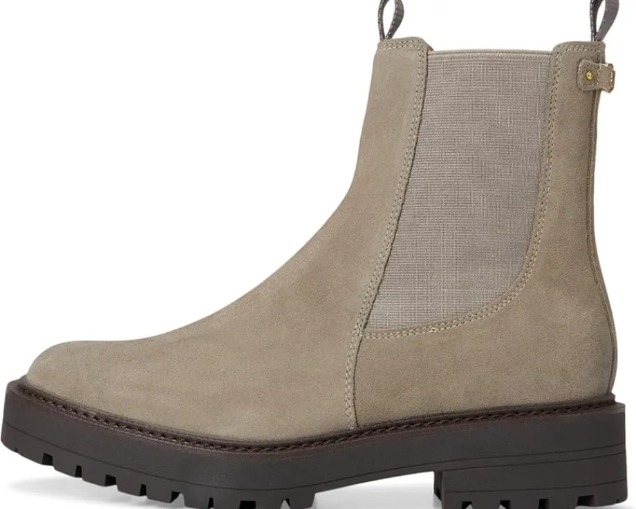 - Designed with a heavily lugged synthetic rubber outsole with a utilitarian style update to a classic Chelsea boot, the Sam Edelman® Laguna boots are the perfect choice for your outdoor adventures. The waterproof technology of these boots keeps your feet dry to take you through the day. These booties are crafted with a leather upper, polyurethane insole, and polyurethane lining. These leather booties are the perfect footwear for different occasions.