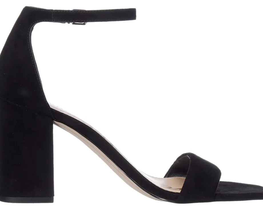 - Dance the night away in the metallic Sam Edelman® Daniella heels featuring a leather upper with an open, square-toe silhouette on a block heel.