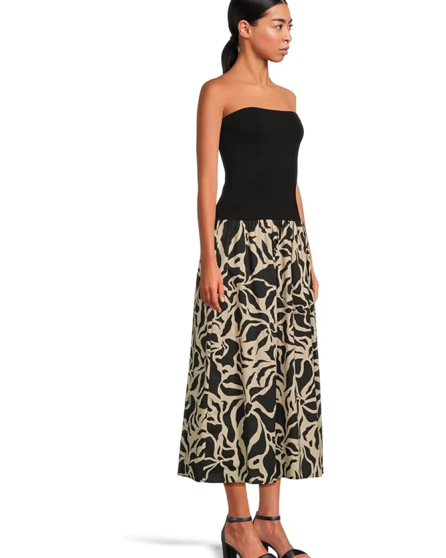 - Effortlessly stylish and beautifully detailed, the Sanctuary™ Meet Me At Sea Midi Dress elevates your fashion game. The strapless midi dress comes with an off-shoulder neckline and a graphic printed skirt that is intended to hit at the calves.