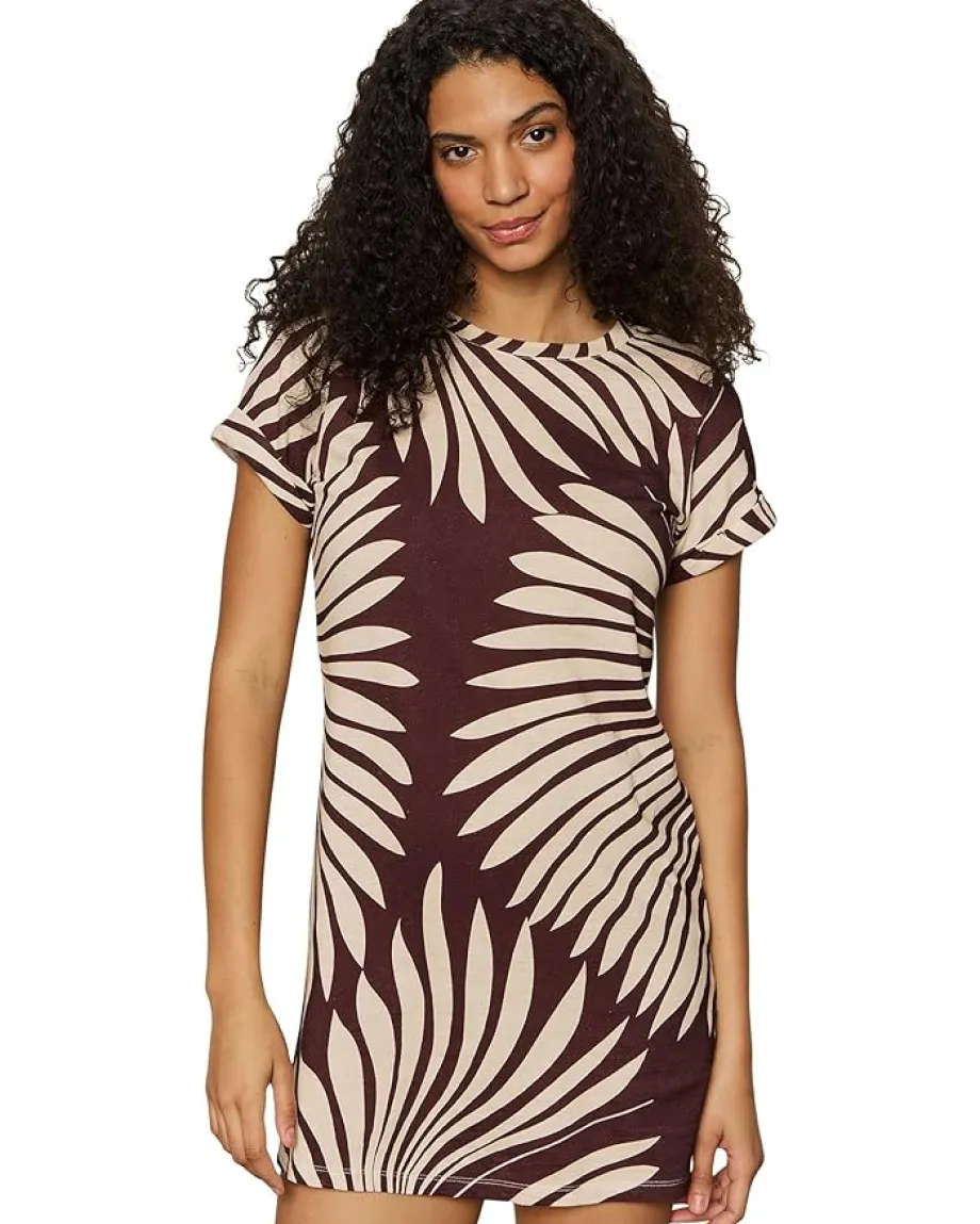 - Dress fashionable wearing the Sanctuary™ Perfect Tee Remix Dress. This dress features crew neckline, short cuffed sleeves, relaxed fit, back seam details, allover graphic print, and self tie belt at the waist.