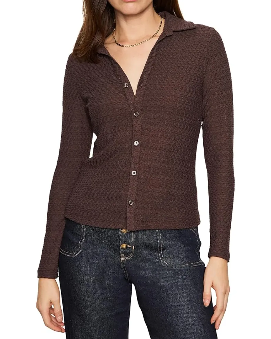- The Sanctuary™ Textured Knit Dreamgirl sweater offers a soft, dimensional feel with a flattering silhouette. Featuring a button-down front placket, spread collar, and long sleeves, this top adds a touch of sophistication to everyday dressing.
