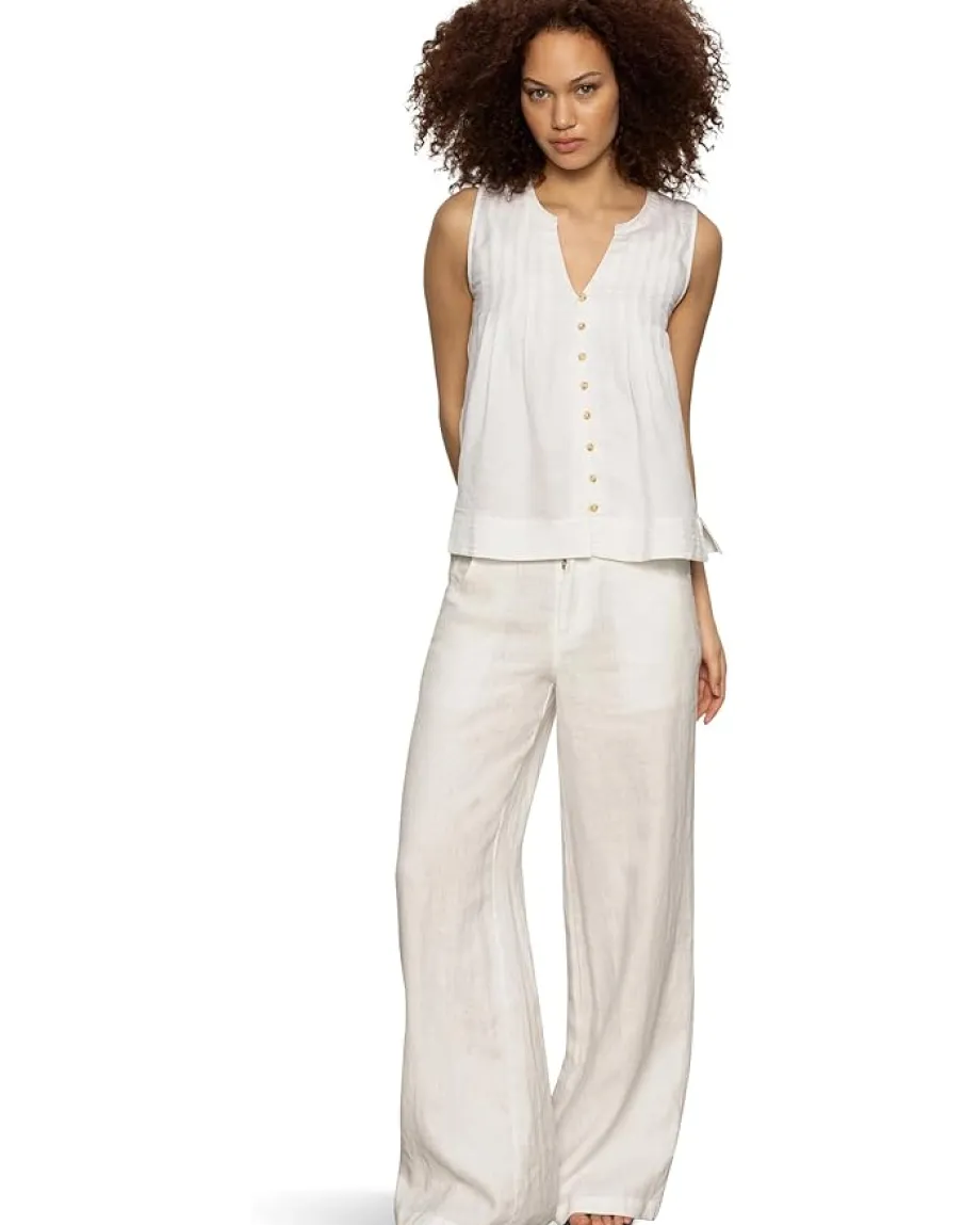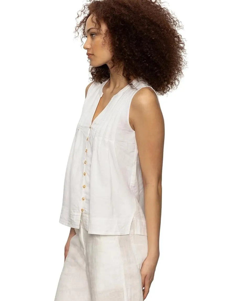 - Effortlessly chic and endlessly wearable – meet your new warm-weather go-to: the Sanctuary™ Harmony Tank. Designed with a modern classic fit, this sleeveless staple features a flattering V-neck and elegant pleat details at the chest that add subtle texture and visual interest. The button front design gives it a timeless twist, while the easy pull-on style keeps things comfy and carefree.