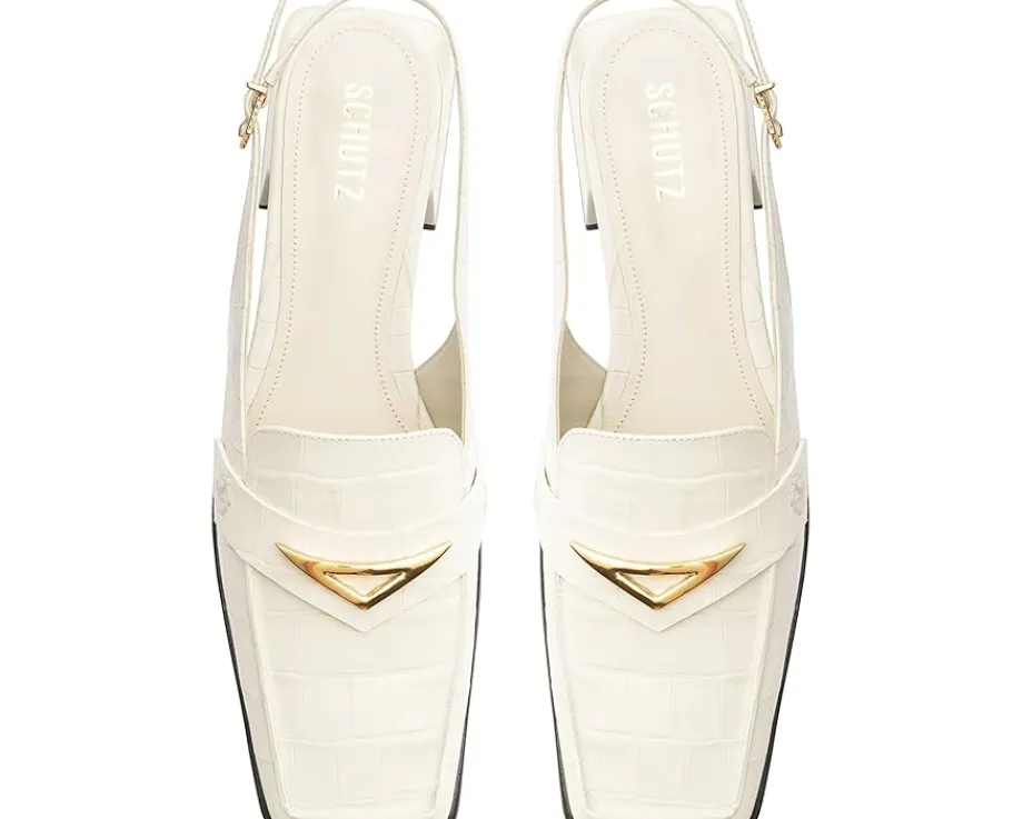 - From casual styles to work outfits, the Schutz® Arizona Sling Block sandals work for different occasions. The EVA insole and synthetic lining of these sandals offer all-day comfort. These heeled sandals are crafted with a croco printed leather upper with an adjustable slingback strap. A perfect choice to style up your outfits, these leather sandals make a great addition to your footwear collection.