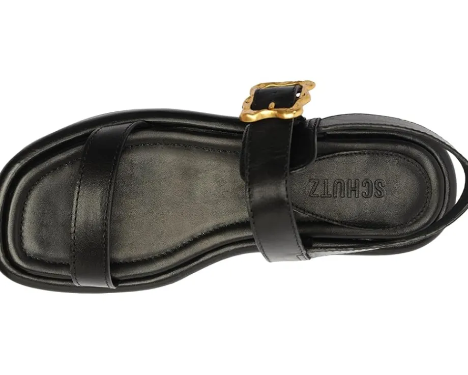- The Schutz® Wavy Flatform is so comfortable that you’ll want to dance all night long!. These open square toe design sandals feature brand detailing on the footbed, adjustable ankle strap buckle closure, and leather upper.