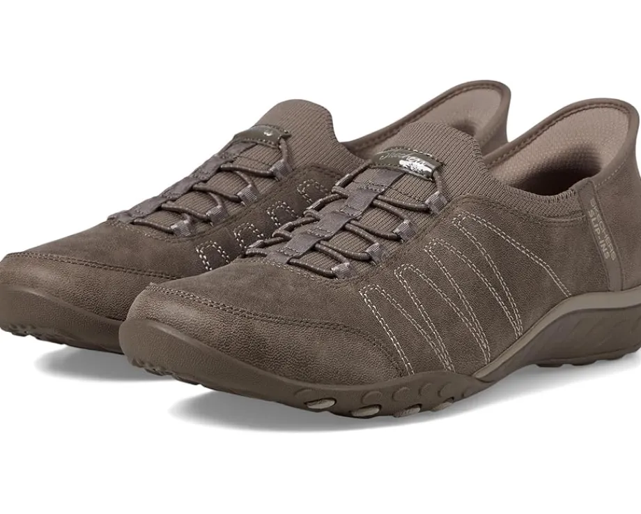 - Crafted with a Stretch Fit® design and stretch laces that offer sock-like comfort, the SKECHERS® Breathe Easy- Home Body Hands Free Slip-Ins are designed to match your everyday comfort and style. The low-profile flexible midsole of these shoes offers added comfort while the Exclusive Heel Pillow™ securely holds your foot in place. Match your casual outfits and style up your simple looks with these slip-on shoes.