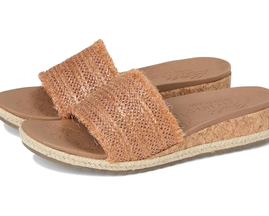 - Summery style and absolute comfort combine in the SKECHERS® Breezie – Radiant Feels. This vegan slide sandal features a frayed edge raffia slide, cork veneer midsole with jute trim, and a cushioned Luxe Foam® footbed.