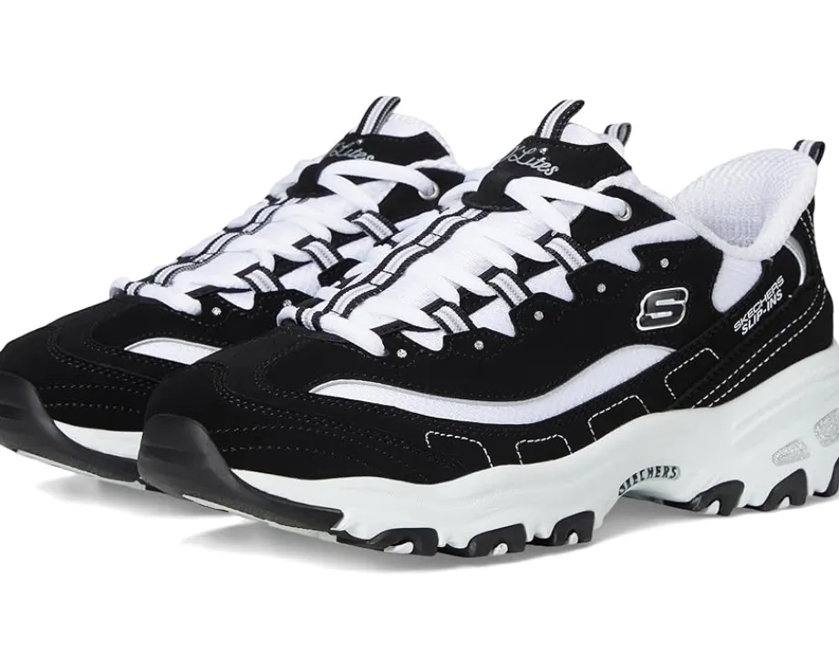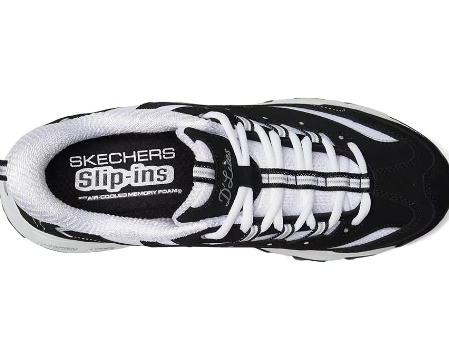 - The SKECHERS® D’Lites Hands Free Slip-INS shoes are comfortable and cushioned sneakers that feature a rubber upper, making them a great choice for your outdoor rides and adventures. They are made of an Air-Cooled memory foam insole that provides cushioned comfort. The lace-up closure of these shoes ensures a secure fit while the pull tabs at the front and back offer easy wear.