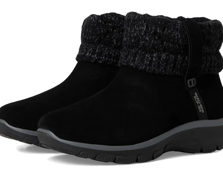 - Explore the outdoors in effortless cozy comfort with the SKECHERS® Easy Going – Cozy Weather 2 Suede Hands Free Slip-ins. Designed with an exclusive heel pillow™, these slip-on booties feature a suede upper that is treated with 3M® Scotchgard® to resist water and stains. They are designed with a sweater knit fold-over collar, fabric lining, and a cushioned Skechers Air-cooled Memory Foam® insole. These ankle-high boots are styled with a side buckle closure for a secure fit.