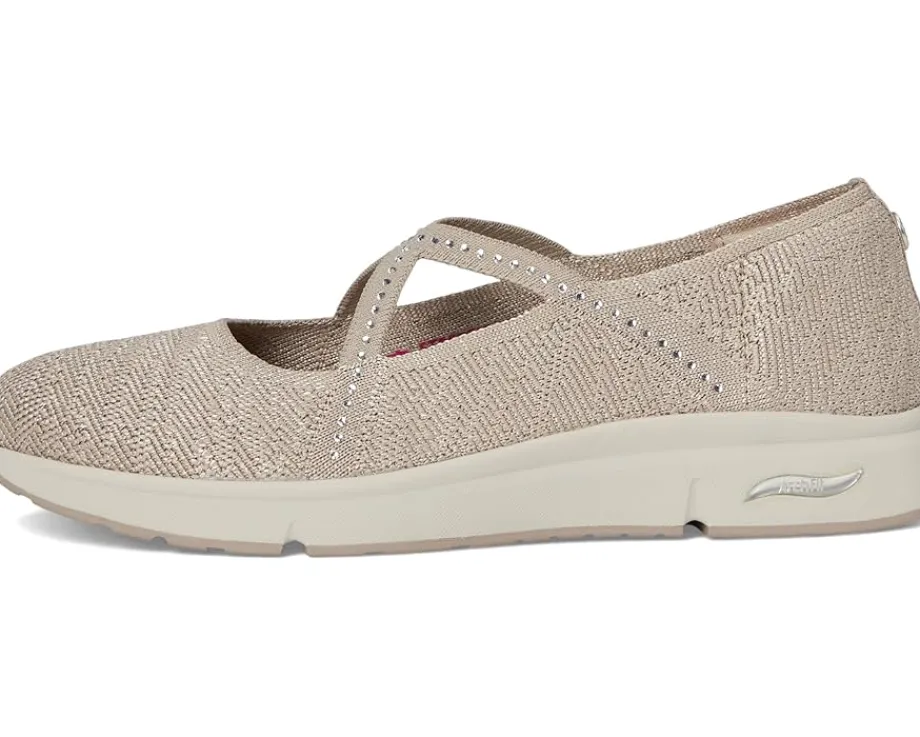 - Celebrated lifestyle expert, Martha Stewart, delivers her one-of-a-kind touch to these SKECHERS® Martha Stewart Arch Fit Living – Meadow Walk shoes. A part of the Skechers x Martha Stewart collaboration, these Mary Jane shoes feature a recycled knit mesh upper with rhinestone embellishments and a removable Arch Fit insole with podiatrist-certified arch support. Their footbed helps mold to your foot to reduce shock and increase weight dispersion, while the Stretch Fit design provides socklike comfort. They are crafted with 100% vegan materials. Lounge about in laid-back comfort with these slip-on shoes.