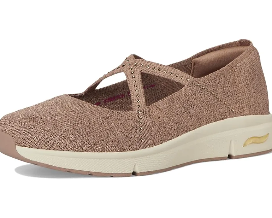 - Celebrated lifestyle expert, Martha Stewart, delivers her one-of-a-kind touch to these SKECHERS® Martha Stewart Arch Fit Living – Meadow Walk shoes. A part of the Skechers x Martha Stewart collaboration, these Mary Jane shoes feature a recycled knit mesh upper with rhinestone embellishments and a removable Arch Fit insole with podiatrist-certified arch support. Their footbed helps mold to your foot to reduce shock and increase weight dispersion, while the Stretch Fit design provides socklike comfort. They are crafted with 100% vegan materials. Lounge about in laid-back comfort with these slip-on shoes.