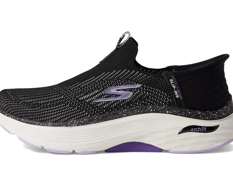 - Take comfort, convenience, support, and stability to the max wearing Skechers Hands Free Slip-ins®: Max Cushioning® Arch Fit – Fluidity. This technology brimmed walking design features a Skechers Hands Free Slip-ins® heel panel with exclusive Heel Pillow, a laceless Stretch Fit upper, removable Arch Fit insole, and a Skechers Max Cushioning® platform midsole – all on a Goodyear Anti-Slip rubber outsole.