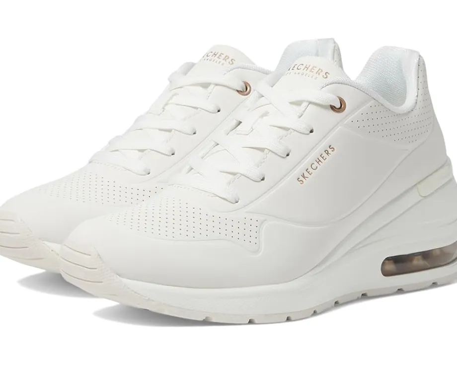 - Elevate your casual style choosing the SKECHERS® Million Air sneakers! These sneakers feature a sleek casual fashion sneaker design, perfect for everyday wear. The synthetic embossed durabuck upper gives a trendy touch, while the polyester lining ensures comfort all day. With the Skechers Air-Cooled Memory Foam® comfort insole and Skech-Air® visible airbag midsole, you’ll feel like you’re walking on clouds.