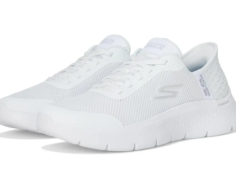 - Take every step with improved style and comfort wearing SKECHERS® Performance Go Walk Flex Hands Free Slip-Ins – Grand Entry that feature a round toe shape and exclusive heel pillow holds your foot securely in place. The sneakers are crafted with a athletic mesh upper, fabric lining, and air-cooled memory foam. The Skechers® Hands Free Slip-ins offer an easy fit and the lace-up closure gives a customizable fit.