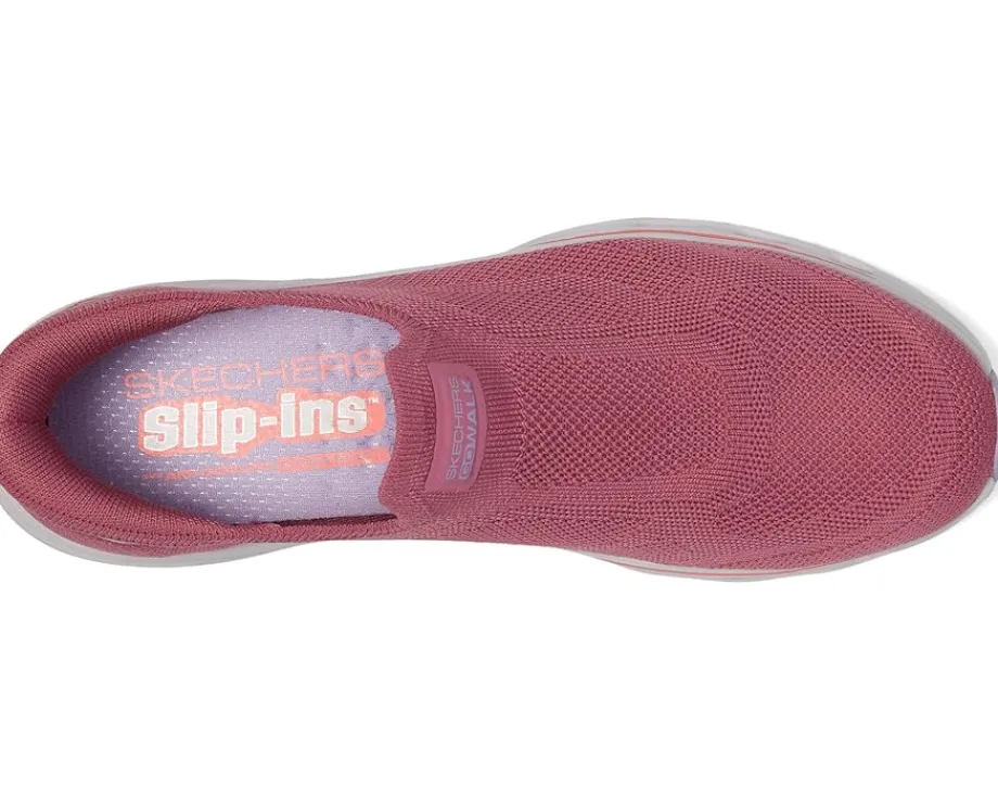 - Step-in to convenient walking comfort and cushioning wearing SKECHERS® Performance Go Walk Glide Step 2.0 Annette Hands Free Slip-Ins. Designed with exclusive heel pillow, this sporty style features a soft engineered knit upper, skechers air-cooled goga mat insole, and a lightweight ultra go cushioned glide-step midsole. It comes with round toe, and brand detailing on the tongue, heel counter, and footbed.