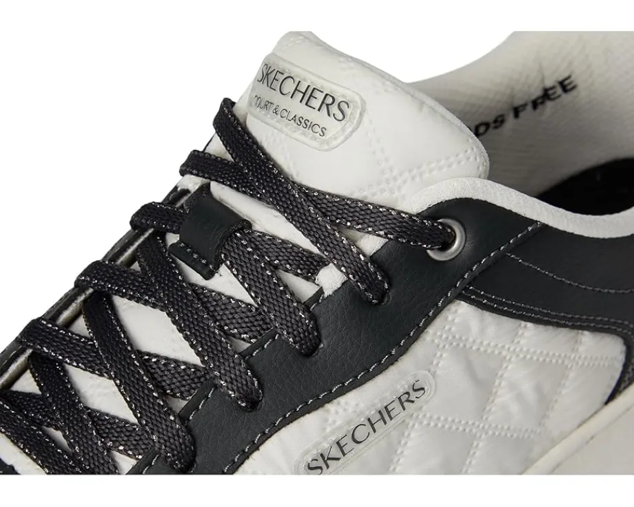 - Casual modern style and effortless comfort combine in SKECHERS® Sport Court 2.0-Daily Journey Hands-Free Sneakers. Designed with our exclusive Heel Pillow™, this a sleek court silhouette features a lace-up duraleather upper and a cushioned Skechers Air-Cooled Memory Foam® insole.