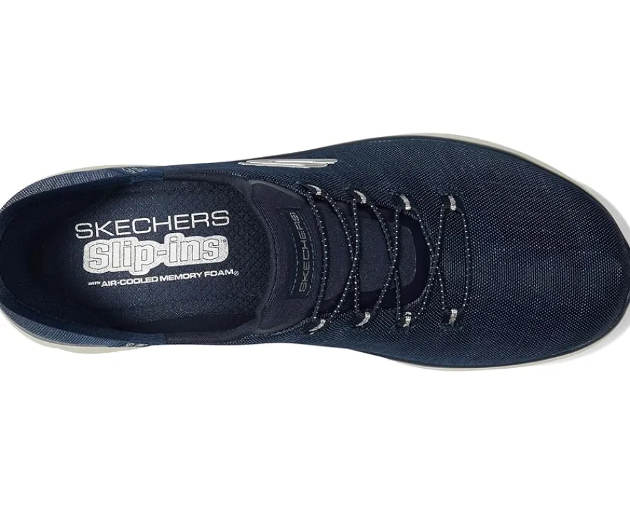 - Add a little glam to your step wearing the SKECHERS® Summits-Classy Night Hands Free Slip-Ins. Designed with an exclusive Heel Pillow, these shoes feature a snake-patterned sparkle mesh upper with fixed stretch laces that make them a comfortable footwear choice. The cushioned Skechers Air-Cooled Memory Foam® comfort insole cushions each of your steps. Machine washable, these lace-up sneakers are perfect to pair with different styles and outfits.