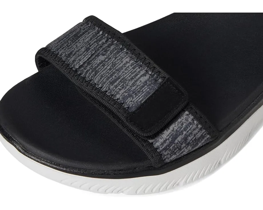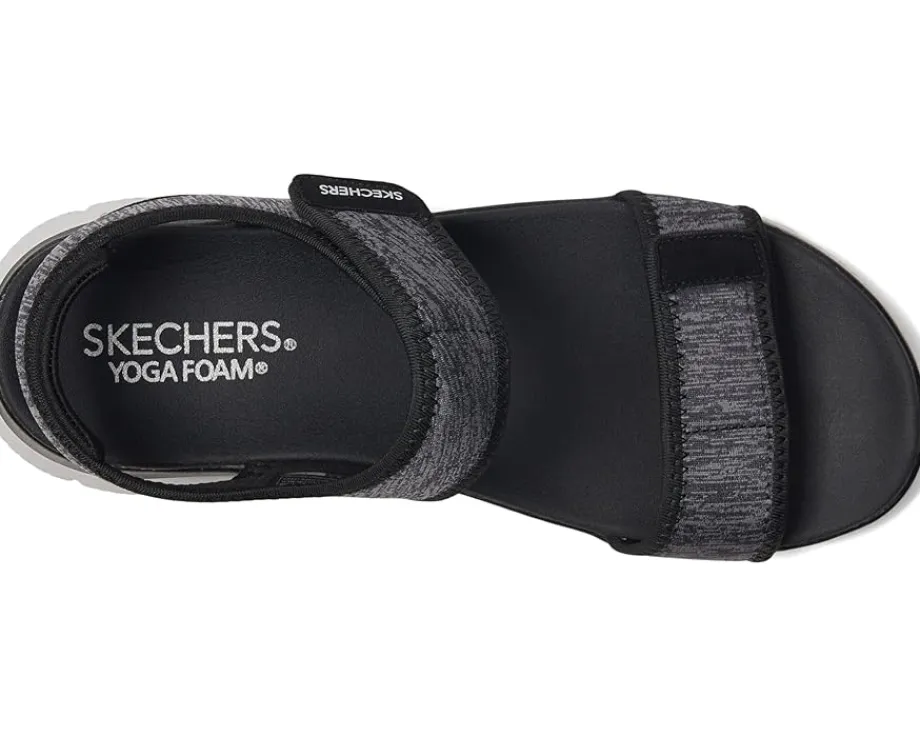 - The SKECHERS® Summits – Cutest Icon are ready for anything, from errands to explorations. This trendy sandal combines laid-back beach vibes with modern flair, featuring a leather upper and lining for a sleek, elevated look. Designed with a Yoga Foam cushioned footbed, it offers cloud-like comfort with every step. The flexible traction rubber outsole ensures stable footing, while the hook-and-loop closure and adjustable double strap slingback provide a custom, secure fit. Open-toe design lets your feet breathe, making it perfect for sunny days. Crafted with vegan materials, it’s the eco-friendly choice for fashion-forward comfort.