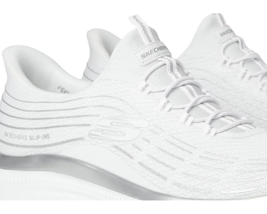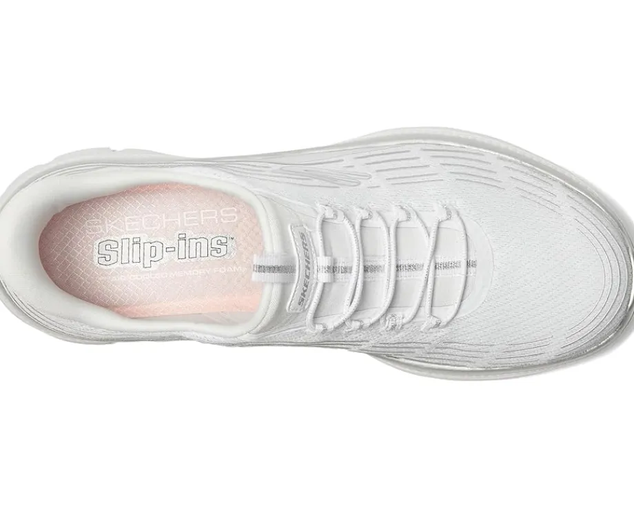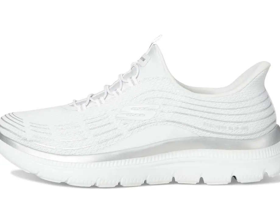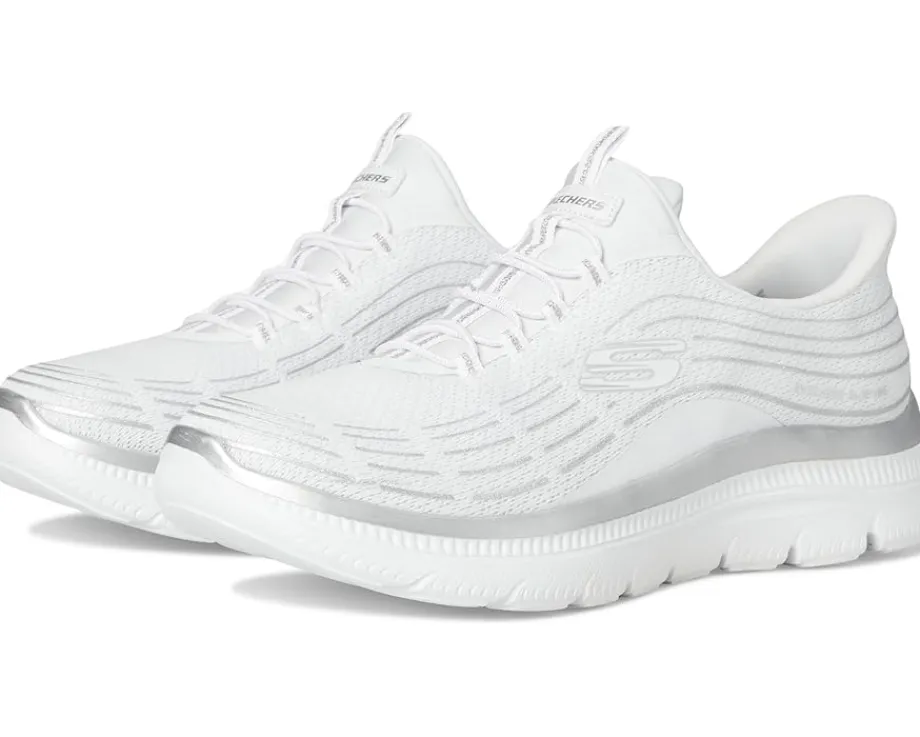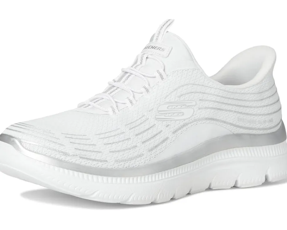 - The SKECHERS® Summits Plus Hands Free Slip-INS provide all-day comfort and style, thanks to the Skechers Air-Cooled Memory Foam® cushioned comfort insole and lightweight, flexible shock-absorbing midsole. Featuring breathable mesh upper with an ombré 3D print and a stretchable lace front, these sneakers offer both style and functionality. The Exclusive Heel Pillow™ keeps your foot securely in place while the Skechers Hands Free Slip-ins® provide an easy fit.