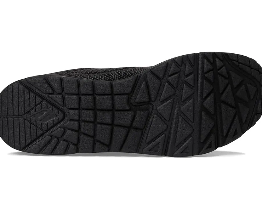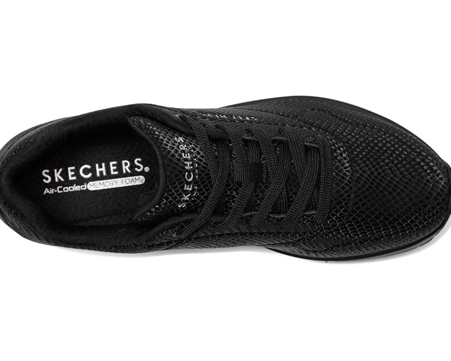 - Step into the groove with the SKECHERS® Uno – Shiny Scale shoes. These fashion sneakers feature a lace-up polyurethane reflective upper, Skechers Air-cooled Memory Foam® insole, and a visible, air-infused Skech-Air midsole that gives you the feeling of walking on clouds, everywhere you go. The polyester lining offers added comfort. Experience cushioning and exceptional support with their signature comfort technology. Take to the air in a variety of lightweight styles and comfortable cushioning you can feel with these lace-up sneakers.