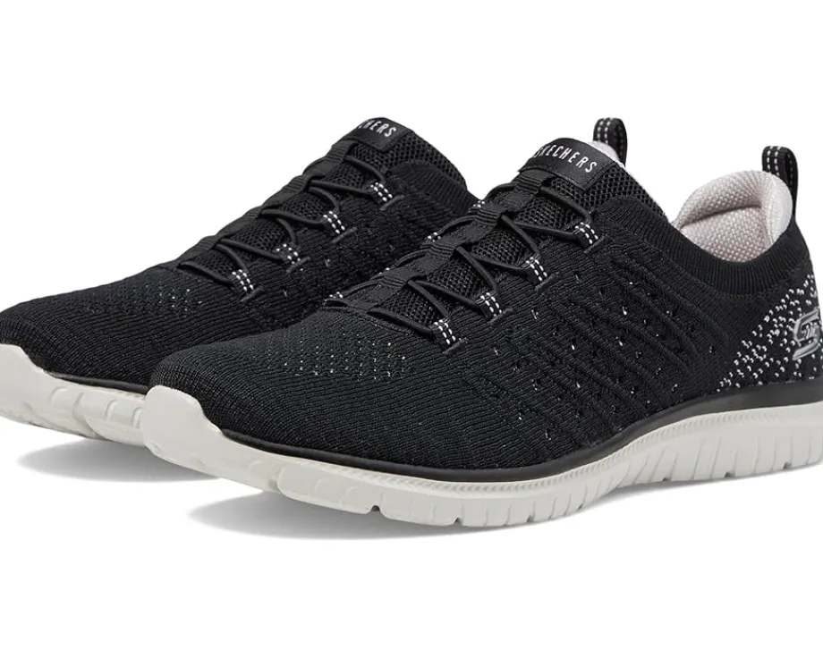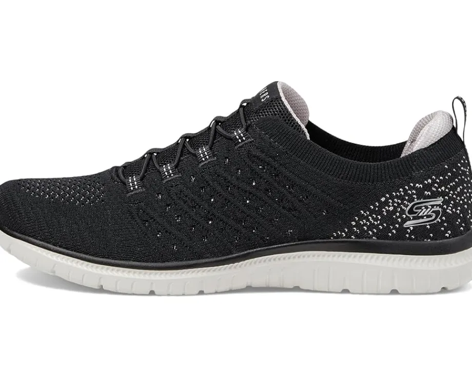 - Make your everyday jogging much more fun and comfortable wearing SKECHERS® Virtue Show Runner Shoes. These feature a round-toe silhouette with a bungee lace closure and ankle pull tab for donning & doffing. The low-top running shoes are crafted with a breathable & engineered knit upper and a memory foam rubber insole for ultimate comfort.