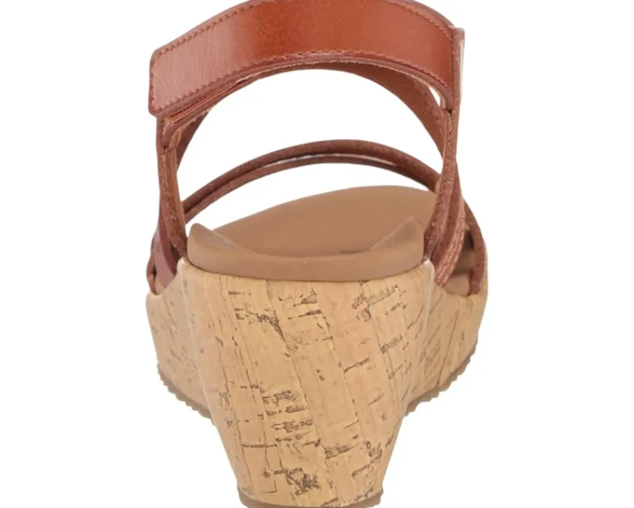 - Pull-on sandals with buckle strap.