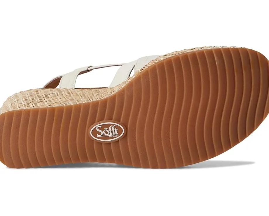 - The Sofft® Devyn wedge sandal is a stylish shoe and they are also comfy. Made from leather and lined in leather, the upper wraps around your feet with comfort and breathability. You can adjust the buckle for a secure fit, and the open toes keep your feet feeling cool and collected. You can feel safe walking on the basket-wrapped wedge heel, which is perfectly balanced with a padded cork footbed and super cushy foam insole for easy support. Long-lasting traction from the rubber outsole is great for daily wear.