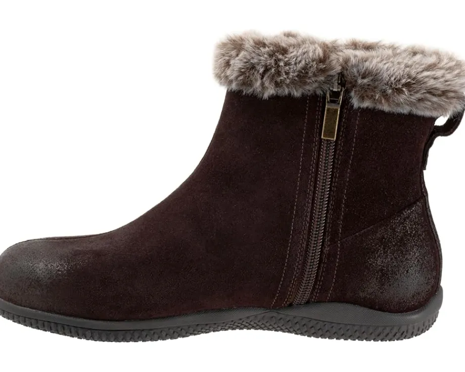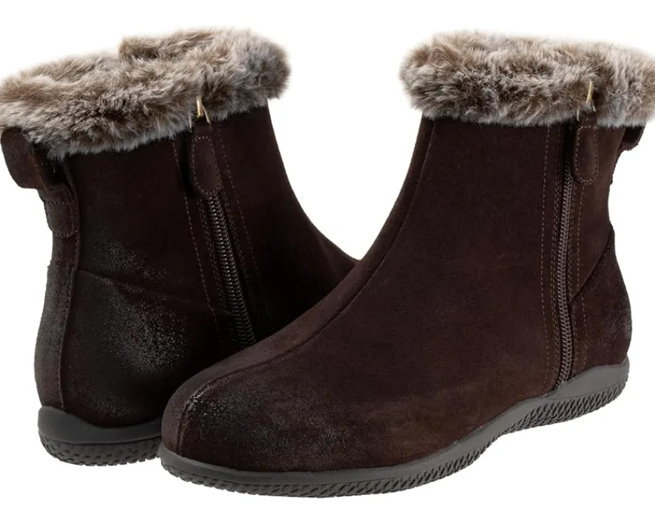 - Plush faux fur lends cold-weather appeal to the Helena zip-up boot. This easy to wear silhouette offers superior comfort with its cushioned footbed and rubberized sole.