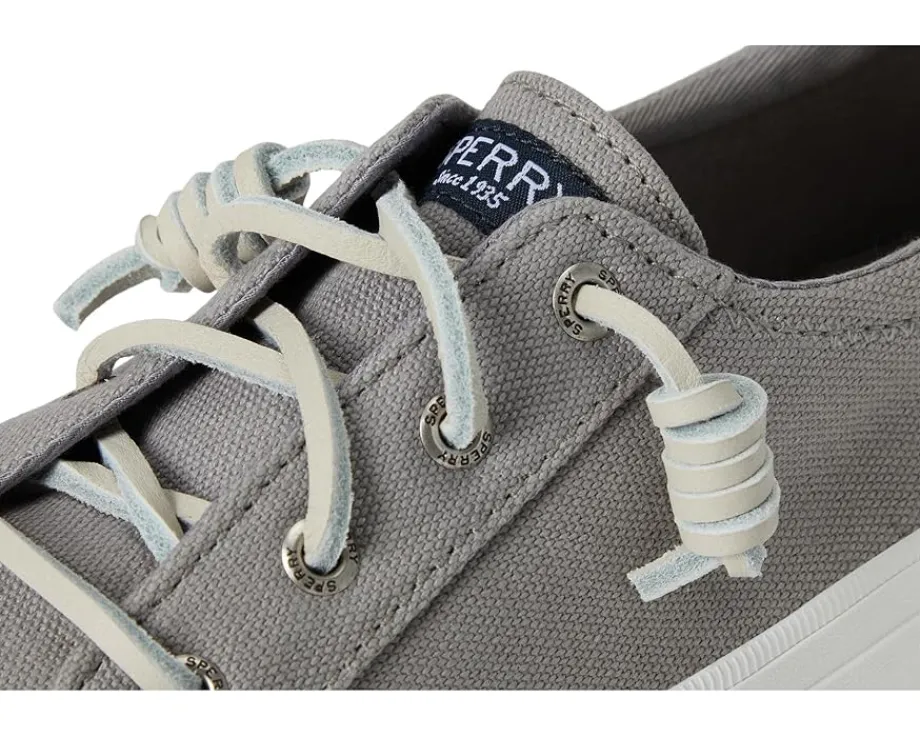 - The superior style of the Sperry® Crest Vibe Washed Linen sneaker will have you riding high on the wave of summer. The canvas uppers and vulcanized construction creates a breathable wear with lasting durability. The classic style features the signature Sperry barrel-tied lacing with genuine rawhide laces and rustproof eyelets.