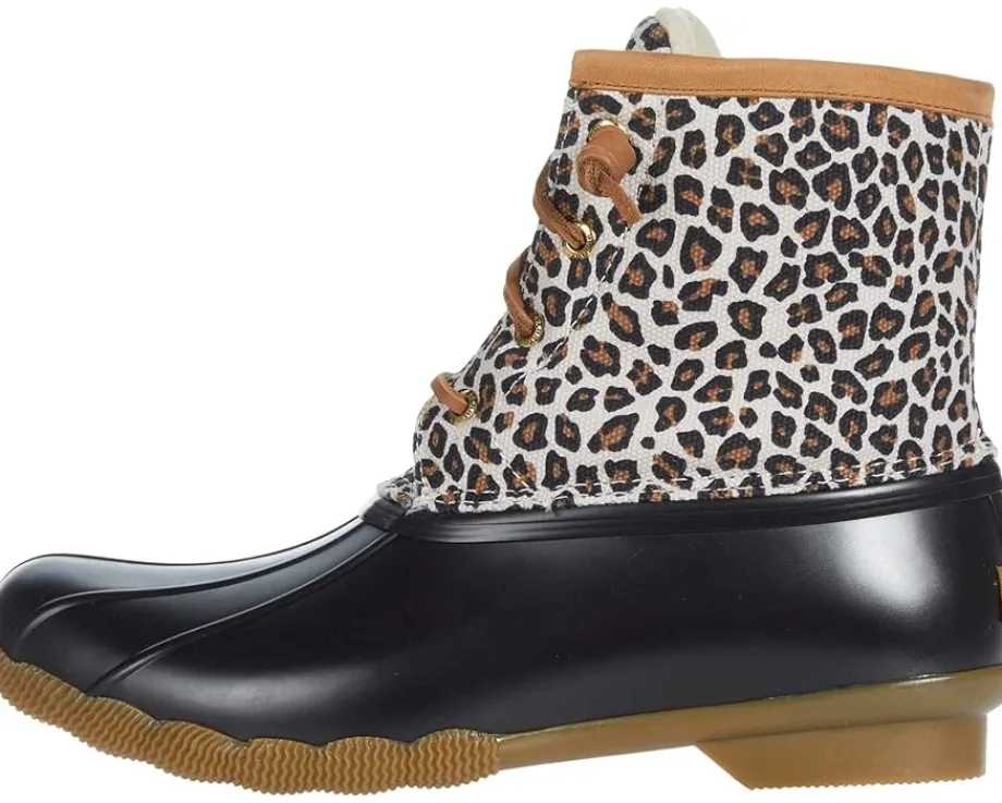 - The Sperry® Saltwater Animal Print all-weather boots have the perfect combination of an exotically eye-catching animal print textile upper with a waterproof rubber shell foot that will keep you stylish, cozy, and dry all-season long.