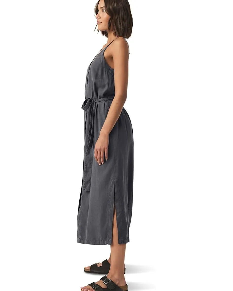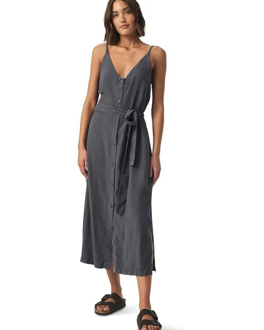 - Wrap yourself in beauty and style wearing the Splendid® Amanda Dress. This dress features V-neckline, sleeveless style with adjustable spaghetti straps, center front button closure with self tie belt and side seam slits.